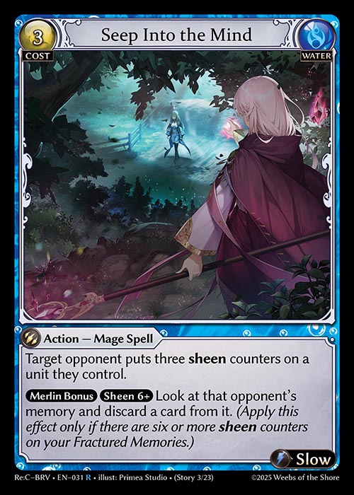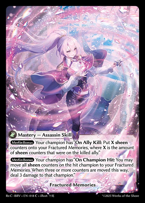 On Enter:Memory にカード1枚引き、Fractured Memories に sheen counter を2個置く。